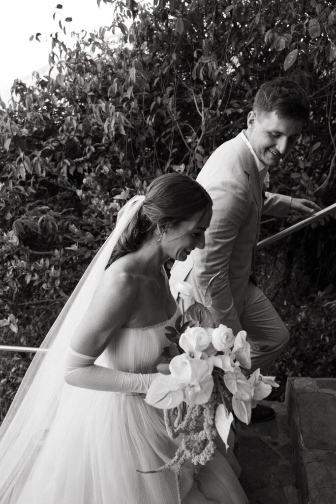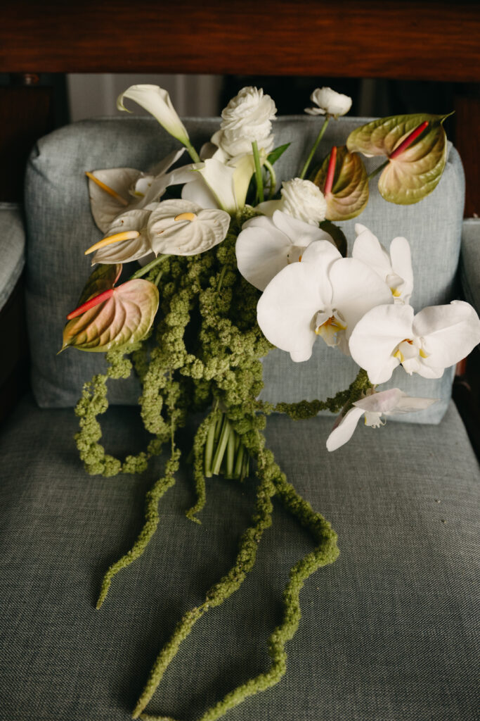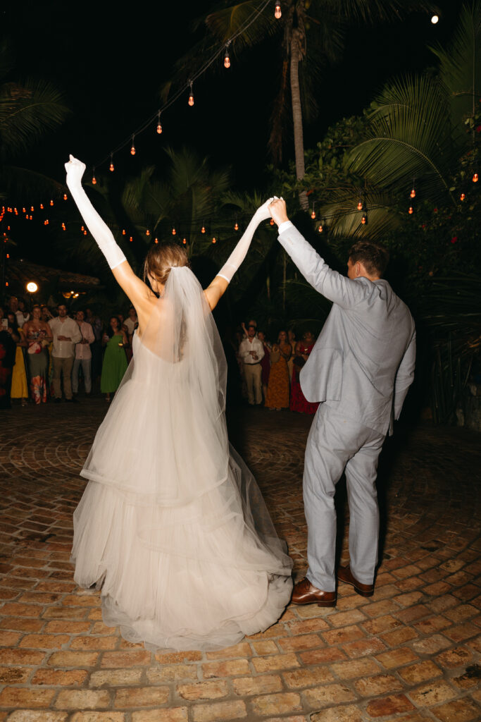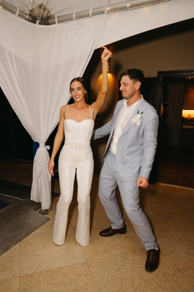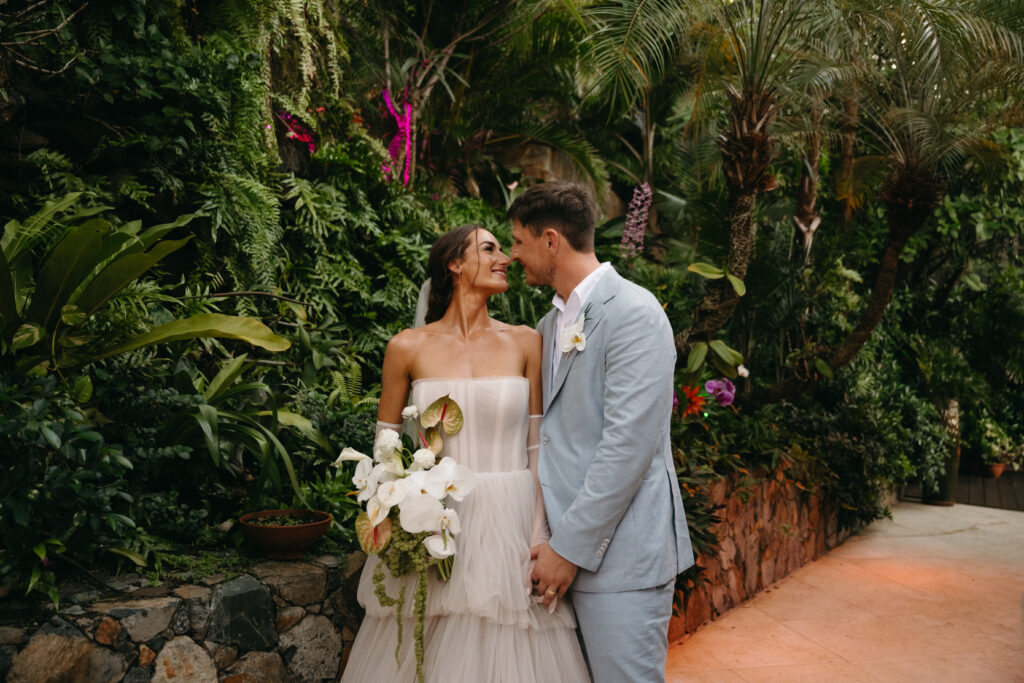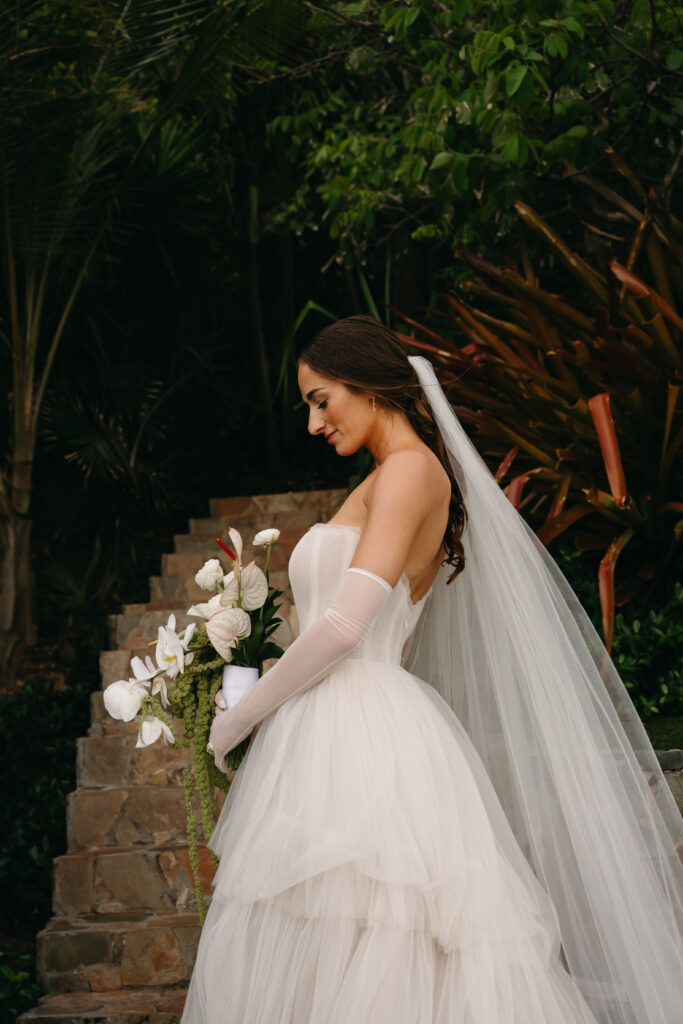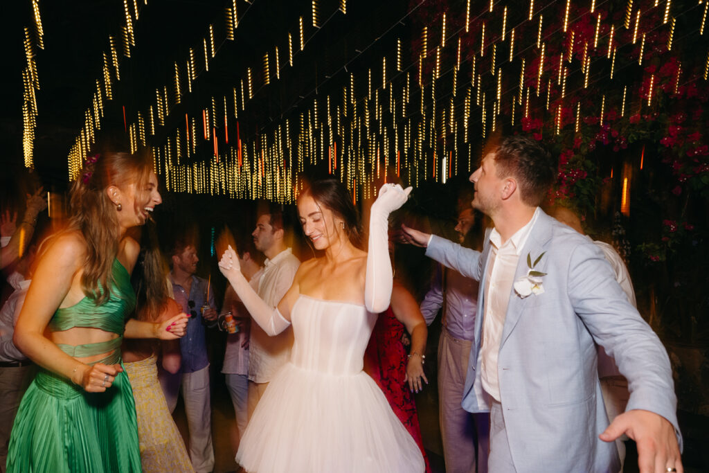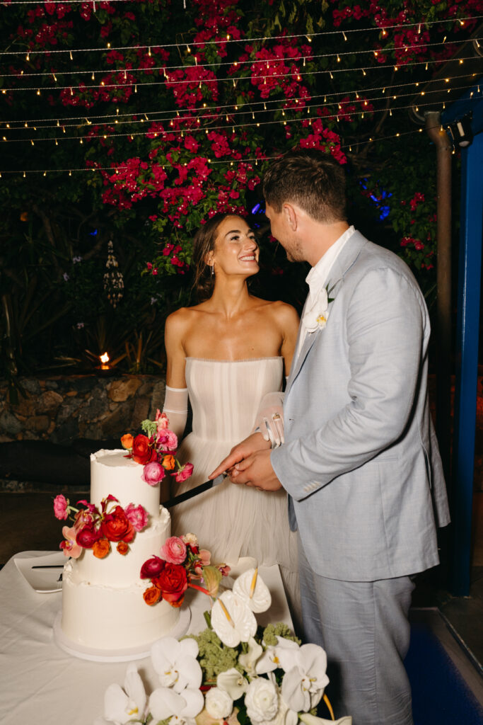 The ceremony arch was an absolute showstopper, overflowing with lush blooms in romantic tones. Every corner of the decor was adorned with flowers, creating an atmosphere that felt luxurious yet full of island charm. They exchanged their vows surrounded by their closest friends and family, while the waves crashed below them there were cheers of pure excitement and joy!